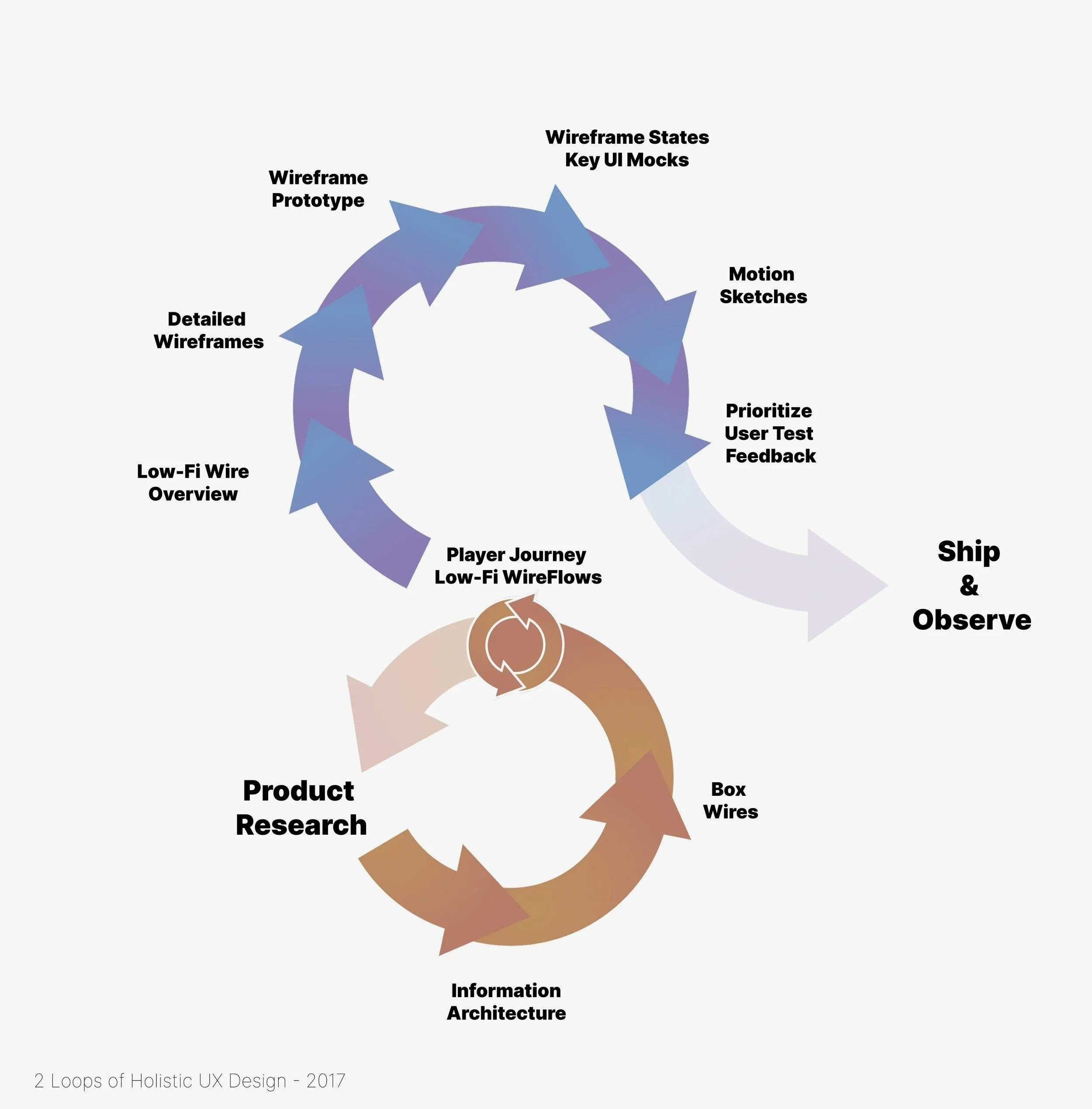 The second loop is about uncovering all the details & defining the a best solution to get feedback from all stakeholders, which when combined with user testing may send you back to revisit parts of the design, or even kick you back to the first loop to explore a newly discovered space.
